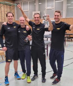 Während in der Rückrunde noch um die letzten Punkte gekämpft wurde, ging es am 24.03.24 in Roth bei Nürnberg an einigen Platten um die Pokale der verschiedenen Spielklassen. In der Bezirksliga Nordwest hatten es unsere Damen ins Finale geschafft, in welchem sie den Gastgebern des TSG 08 Roth e.V. gegenüberstanden. In der packenden Begegnung konnten sie sich mit einem sehr knappen 4:3 (und 14:13 Sätzen!) durchsetzen und den Sieg im Anschluss gebührend feiern. Durch diesen Erfolg konnten sie sich für das Final Four des Bayerischen Bezirksliga Pokals am 13./14. April in Wunsiedel qualifizieren, in welchem sie sich einen sehr guten 2. Platz sichern konnten. Als Nachrücker ginge es dann sogar noch zur Deutschen Pokalmeisterschaft am 11. und 12. Mai 2024 in Schwarzenbek (Schleswig-Holstein)! Hier konnten Sie sich einen respektablen 3. Platz in der Gruppe sichern.